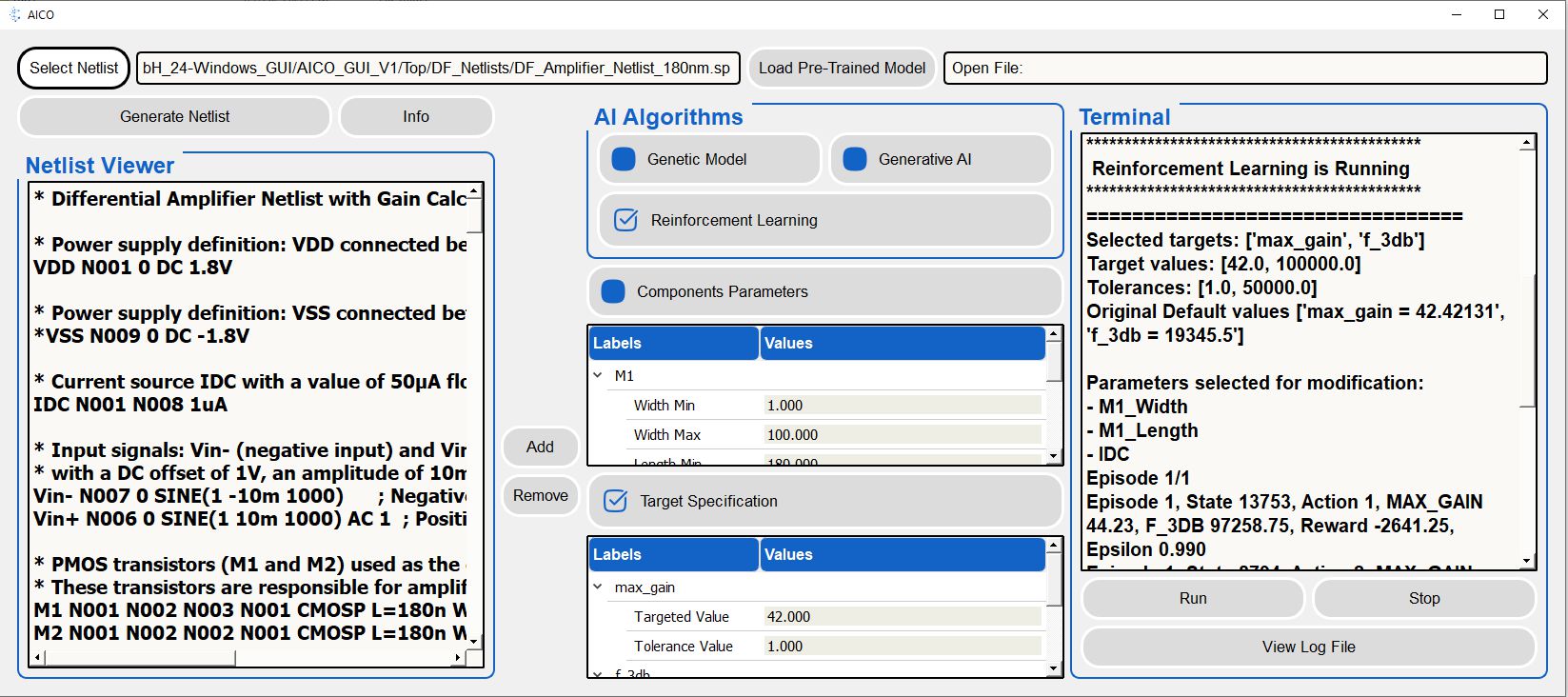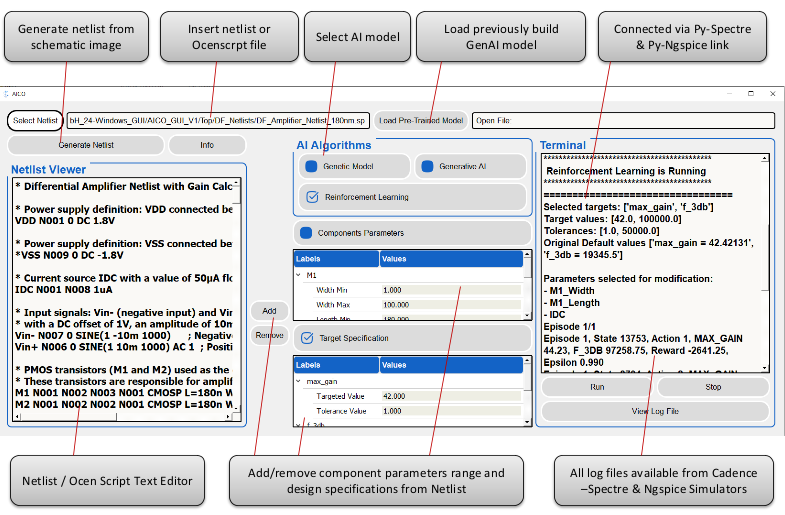 Use AICO in Cadence/Ngspice to extract data for RL and GenAI circuit models